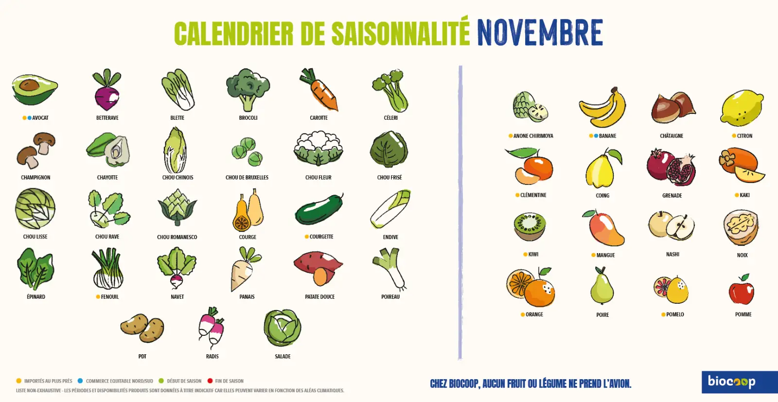 Découvrez le calendrier des fruits et légumes de saison du mois de Novembre
